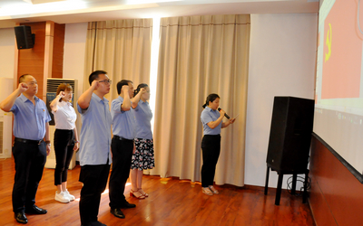 會議首先進行了新黨員入黨宣誓儀式,在莊嚴(yán)的黨旗面前,全體與會黨員也與5名新黨員一起重溫了入黨誓詞。