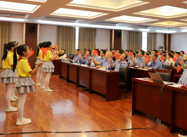 來自實(shí)驗(yàn)中學(xué)的8名小學(xué)生演唱的《歌唱祖國(guó)》在全場(chǎng)掀起互動(dòng),員工們揮舞著手中的小紅旗讓活動(dòng)氣氛達(dá)到高潮。公司領(lǐng)導(dǎo)先后致辭,副總經(jīng)理謝波、財(cái)務(wù)總監(jiān)尹世祥表達(dá)了對(duì)祖國(guó)的祝福,激勵(lì)員工努力工作,為國(guó)家、為企業(yè)多做貢獻(xiàn)。