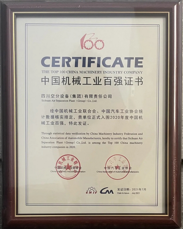 我公司入圍2020年度中國(guó)機(jī)械工業(yè)百?gòu)?qiáng)