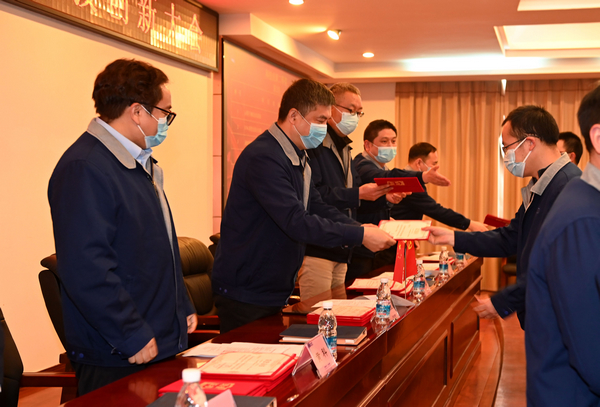 與會領(lǐng)導(dǎo)計曉亮、單凱、謝波、黃科、陳柯任、江蓉為第十屆科技創(chuàng)新大會科技創(chuàng)新成果獲獎代表頒了獎。