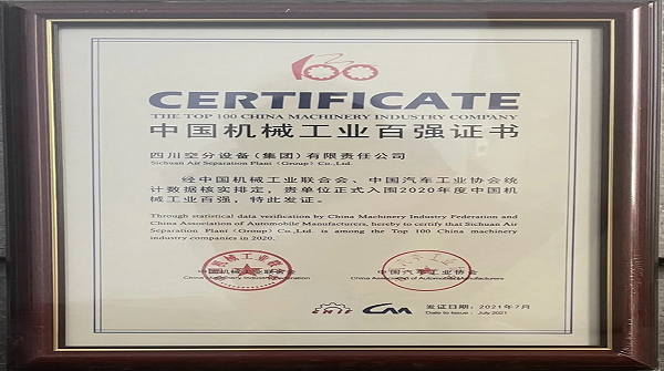 我公司入圍2020年度中國機械工業(yè)百強