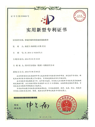實(shí)用新型專利證書-帶制冷循環(huán)的低能耗制氮裝置