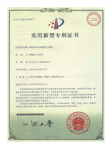實(shí)用新型專利證書-膨脹機(jī)切向旋流阻氣軸封