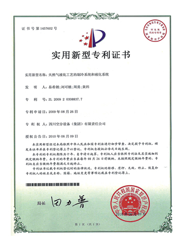 實(shí)用新型專利證書-一種天然氣液化的丙烷預(yù)冷系統(tǒng)