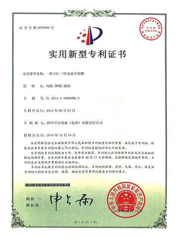 實(shí)用新型專利證書-一種LNG三壁金屬全容罐