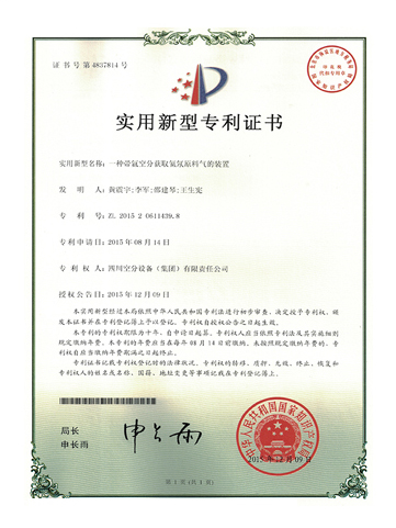 實(shí)用新型專利證書-一種帶氬空分獲取氦氖原料氣的裝置