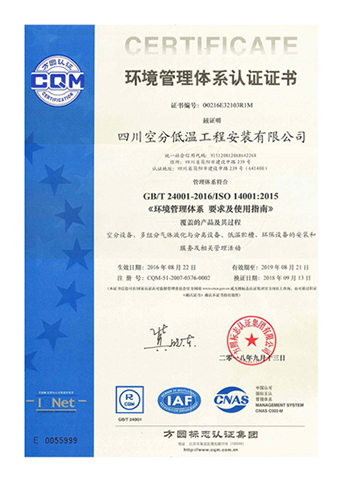 環(huán)境管理體系認(rèn)證證書